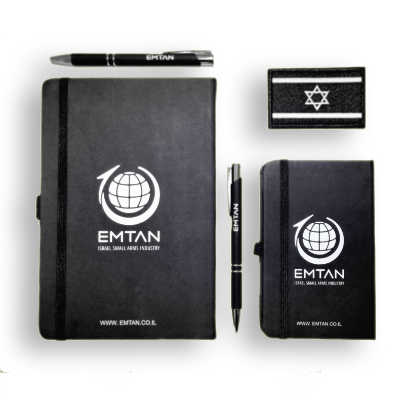 מחברת כריכה קשה ממותג EMTAN + עט מתנה בגדלים שונים